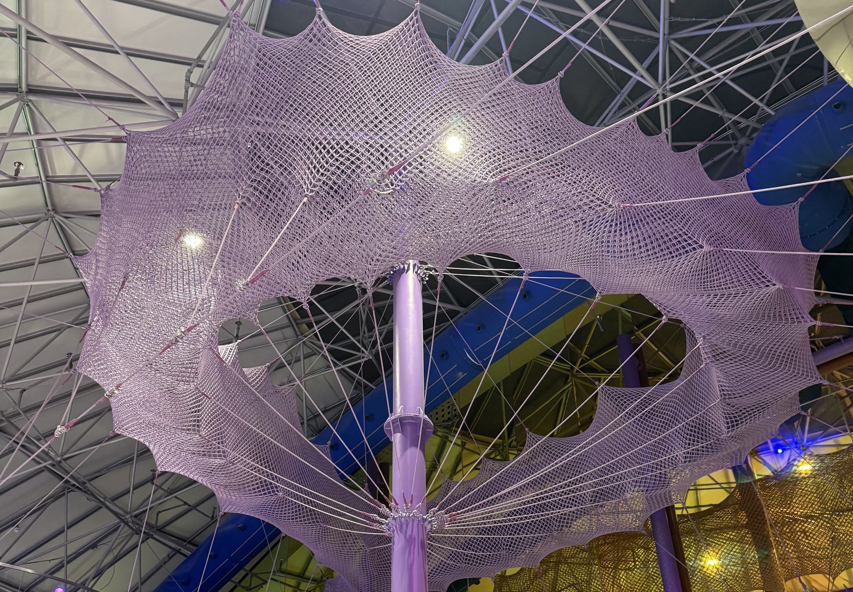 告别千篇一律的工业化游乐设施,迎接一场感官与体能的盛宴。绳立方全新推出的“蚁穴 ”系列,设计灵感源自巴黎时装周的高级定制手工编织艺术。我们将复杂的钩织工艺与游乐空间完美结合,以极具神秘感和视觉张力的紫色为主调,为您打造出一座悬浮于半空中的“时尚艺术品”。